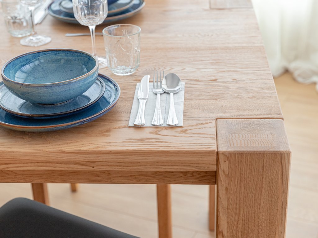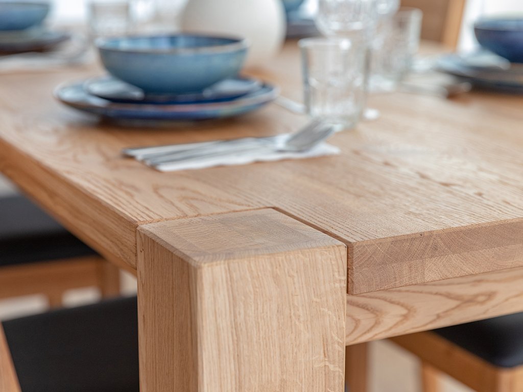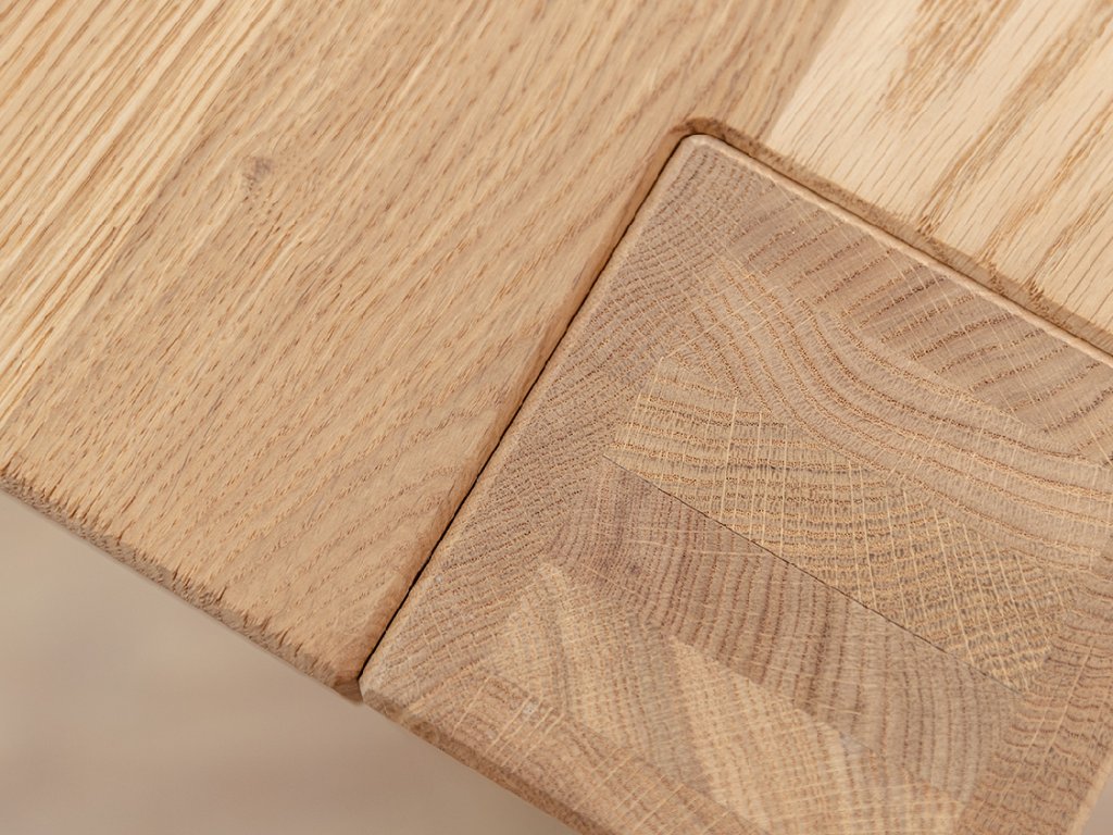 Masivní dubový stůl pro dlouhou životnost Vyroben z prvotřídního dubového masivu, stůl Siena je synonymem pro odolnost a pevnost. Dubové dřevo je výbornou volbou pro domácnosti díky své přirozené trvanlivosti. Desku stolu zdobí přirozené letokruhy, které dodávají prostoru eleganci. Dokonale zapuštěné nohy stolu, upevněné kovovými sponami, zaručují odolnost vůči rozvrzání, prodlužují životnost a udržují stůl v perfektním stavu.