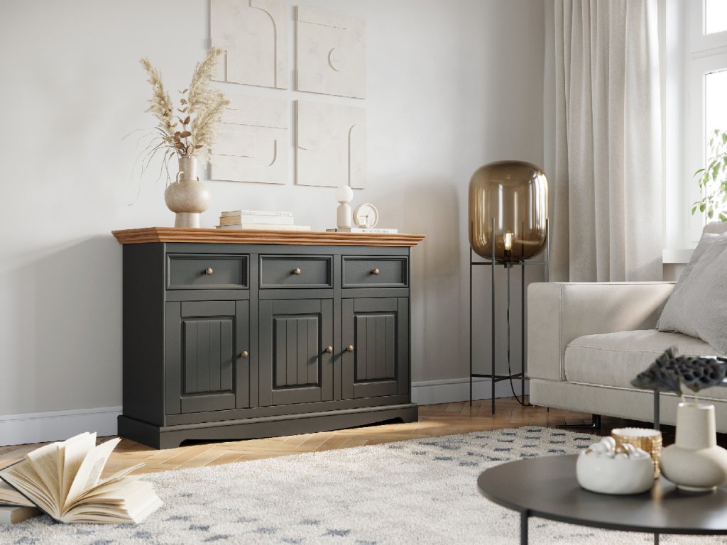 Komoda Belluno Elegante 3.3, šedá-zlatý dub, masiv, borovice