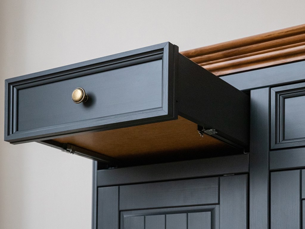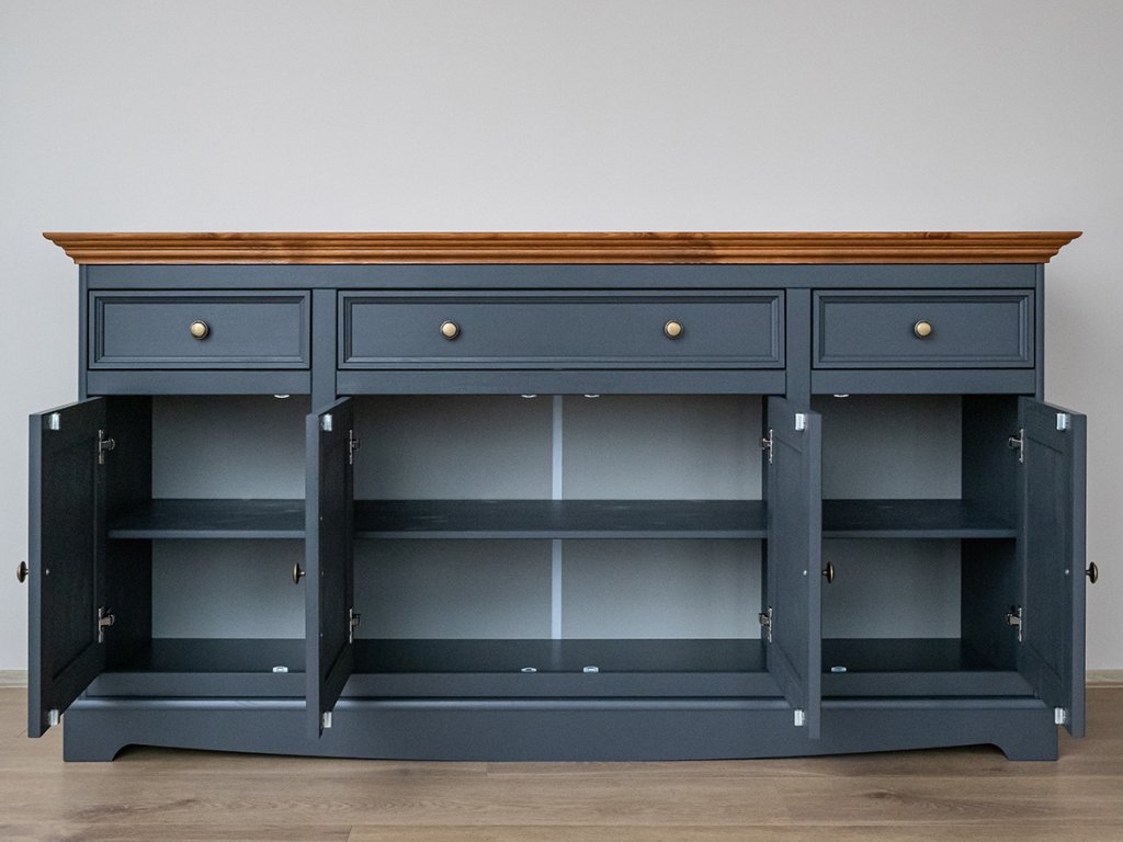 U nás věříme, že nábytek musí dobře vypadat a být univerzálně použitelný jak do obývacího pokoje, tak třeba i do ložnice, nebo předsíně. Hlavně musí být vyroben s precizností a důrazem na kvalitu. Všimněte si ozdobného frézované desky v odstínu zlatého medového dubu. Tlumeného, zcela tichého zavírání u každého šuplíku. Nebo jemného zdobení dvířek a zaobleného podstavce. To jsou detaily, na kterých nám záleží.