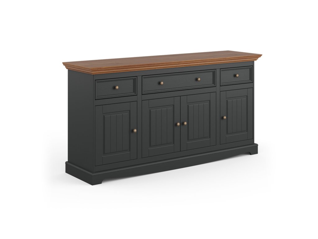 Pokud hledáte opravdu velkou komodu v provensálském stylu v moderní odstínu šedého grafitu, tak právě pro vás je zde komoda Belluno Elegante, která je s šířkou 167 cm největší komodou v této elegantní sérii.