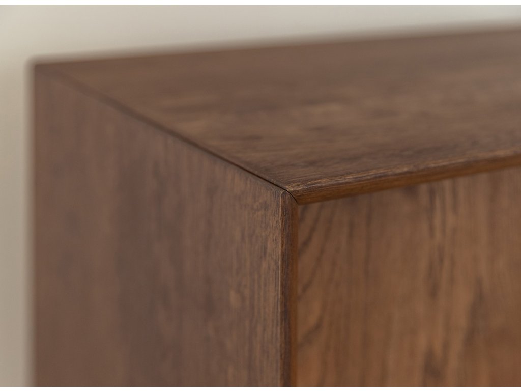 Komoda Fabro, dub, je vyrobena kombinaci kvalitního dubového dřeva a DTD desky, která je potažena dýhou o síle 1,6 mm.