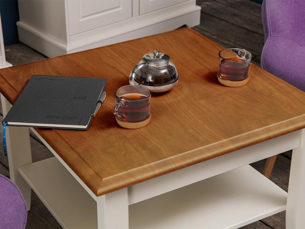 Jednoduše krásný. Tak se dá charakterizovat čtvercový konferenční stolek. Je pevný a bytelný, přesto však skvěle zapadá do konceptu romantického provensálského stylu. Vrchní deska dekorovaná v odstínu zlatého dubu mu dodává ještě více na venkovském vzezření.