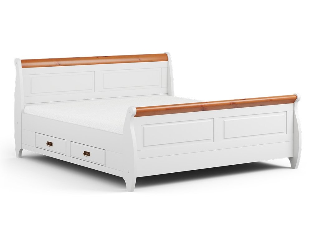 Postel Toskania 140 se šuplíky, borovice, masiv, 140x200 cm, dekor bílá-medová