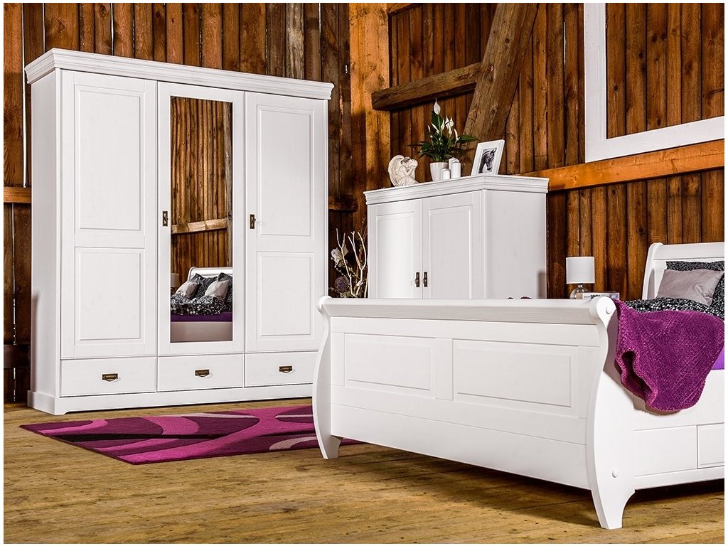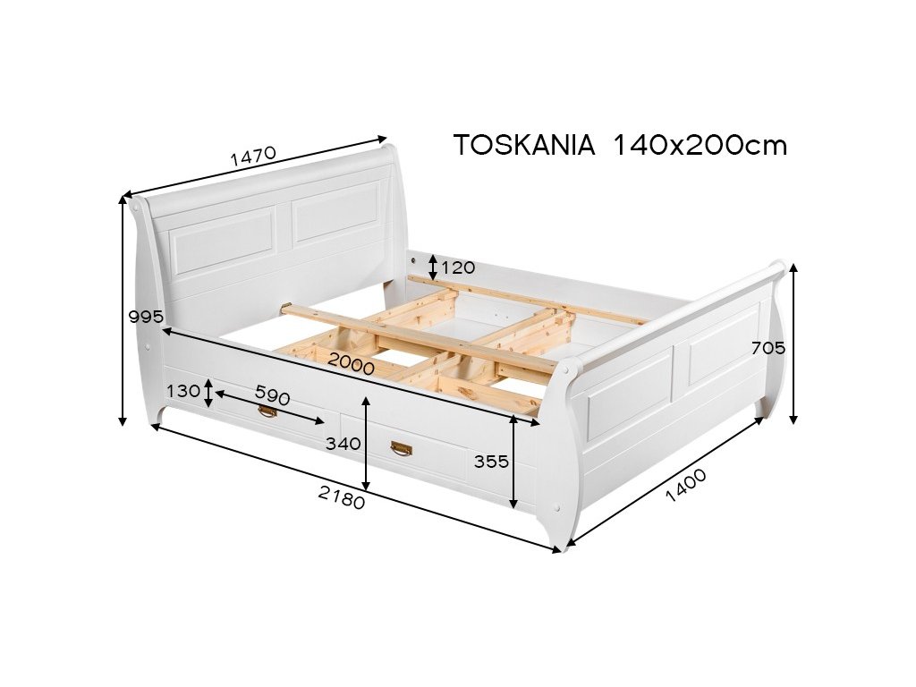 Postel Toskania 140 se šuplíky, borovice, masiv, bílá, 140x200 cm, TAHOMA