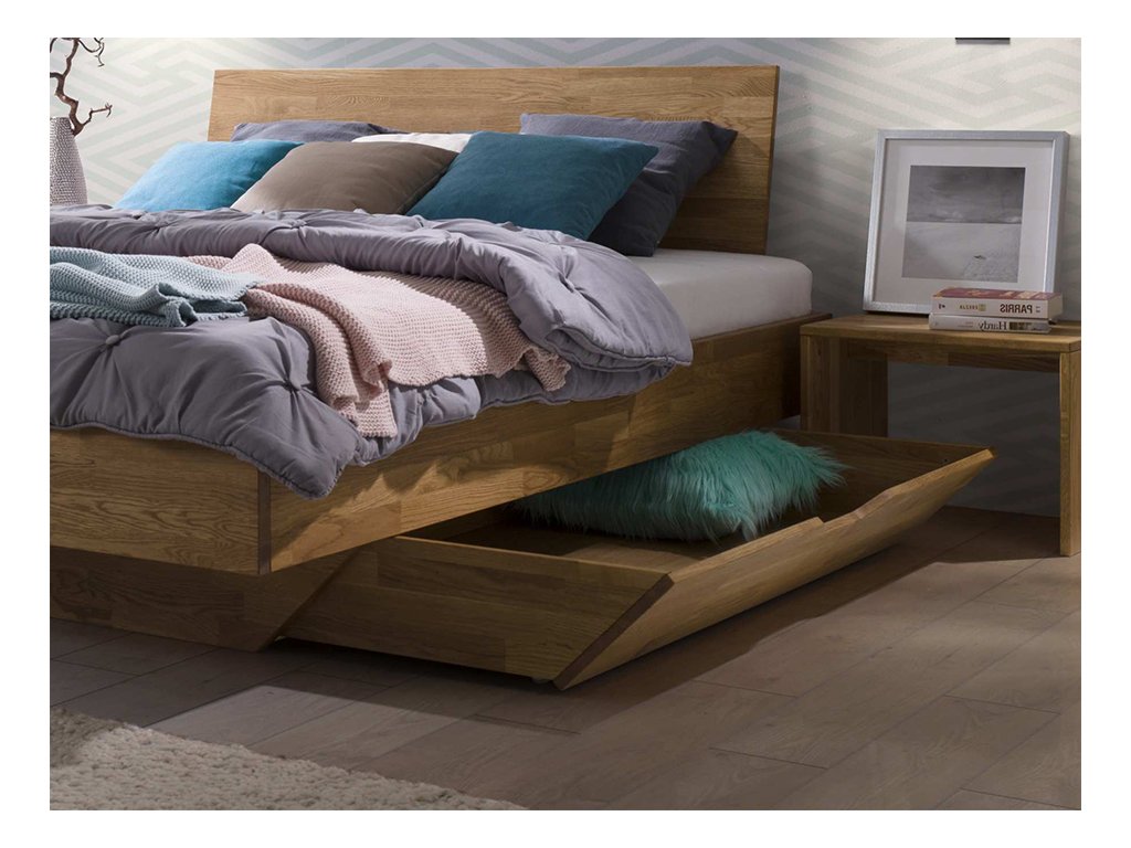 Jestliže máte rádi plastové, kovové nebo skleněné prvky, využijte je v ložnici raději pro dekorace. Dřevěná postel z dubového dřeva nabízí na první pohled příjemný a líbivý odstín, který místnost rozzáří a zahřeje. V kombinaci s bílým ložním prádlem se budete cítit svěže a z postele nebudete chtít vstát.