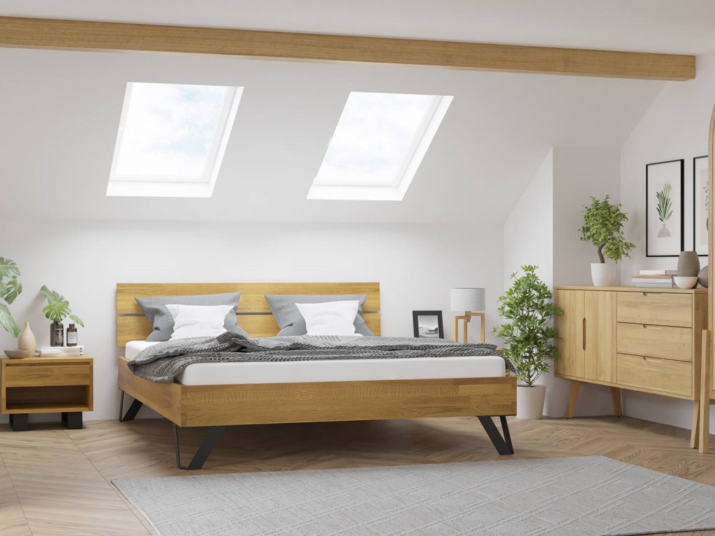 Stylová postel Tero Style 140 x 200 cm je vyrobena z dubového masivu a ozdobena nadčasovými kovovými nohami v černé barvě. Díky masivnímu dřevu a kovovým doplňkům bude postel sloužit věrně dlouhé roky a zapadne do většiny moderních domácností.