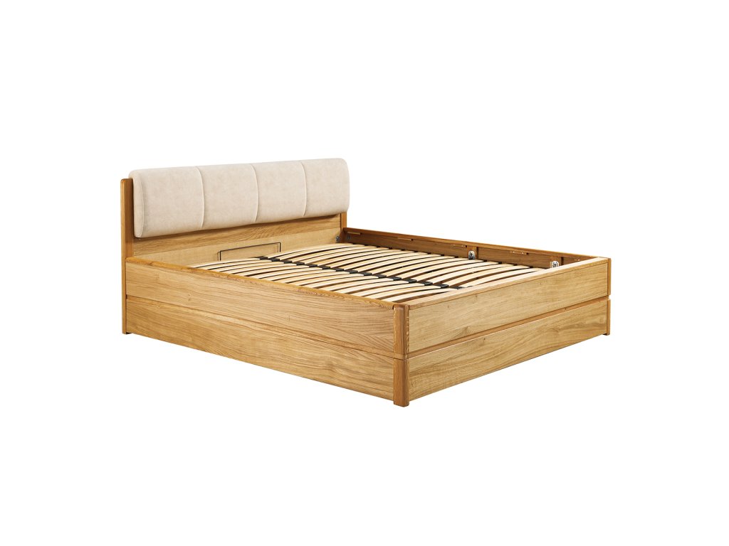 Postel Atena-světlá 140x200 cm, čalounění Ecru s úložným prostorem, roštem, dub