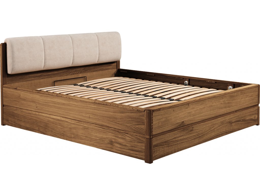 Postel je vyrobena kombinaci kvalitního dubového dřeva a DTD desky, která je potažena dýhou o síle 1,6 mm. Lamelový rošt (32 lamel) je součástí postele.