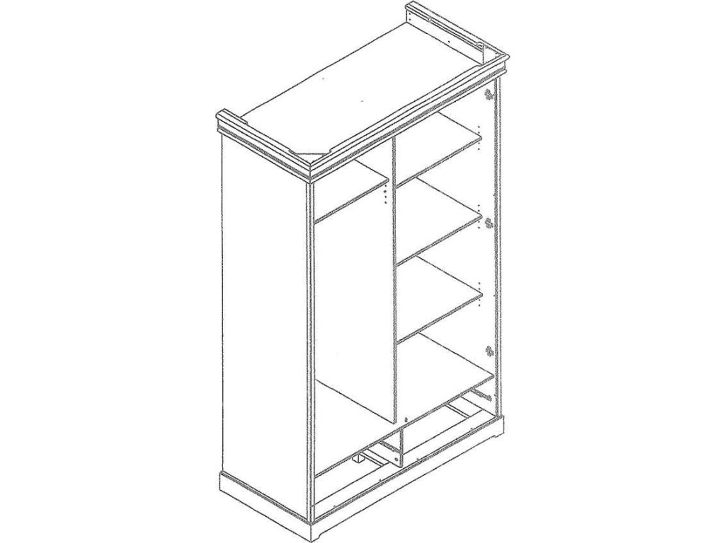 Dvoudveřová skříň na jedné straně disponuje šatní tyčí pro zavěšení oblečení a jednou policí. Ve druhé části se nachází tři výškově nastavitelné police, které si můžete uzpůsobit svým potřebám. V dolní části skříně jsou umístěny dvě zásuvky (šuplíky), které se díky použitým vodítkům vysouvají s mimořádnou lehkostí. Fenomenální design šatní skříně, originální úchyty v barvě starého zlata a bílo-měděný dekor vytváří půvabný kus nábytku, který skvěle zapadne do ložnice, dětského pokoje i do předsíně.