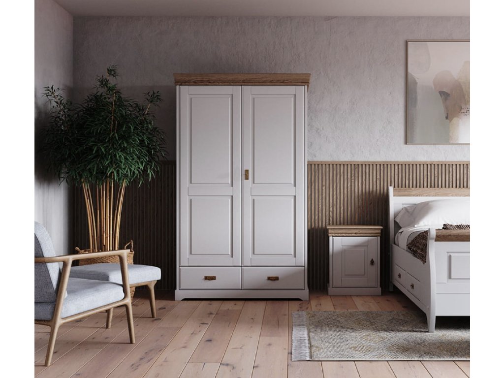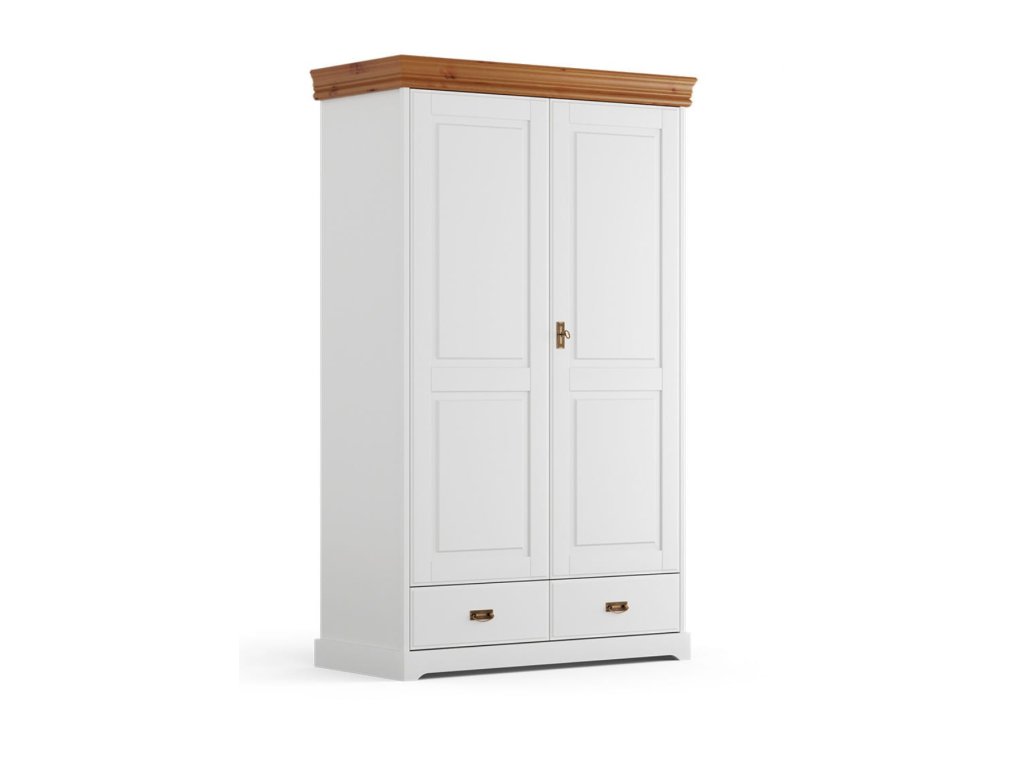 Šatní skříň 2D Toskania se zásuvkami, masiv, borovice, dekor bílá-medová