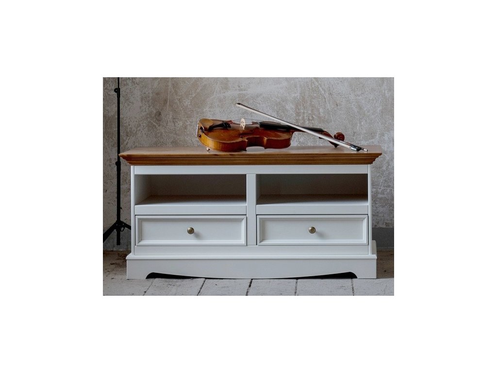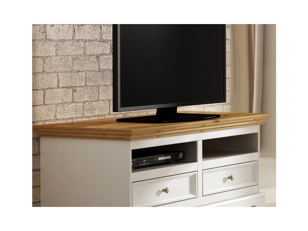 Dřevěný TV stolek Belluno Elegante, dekor bílá | zlatý dub, masiv, borovice