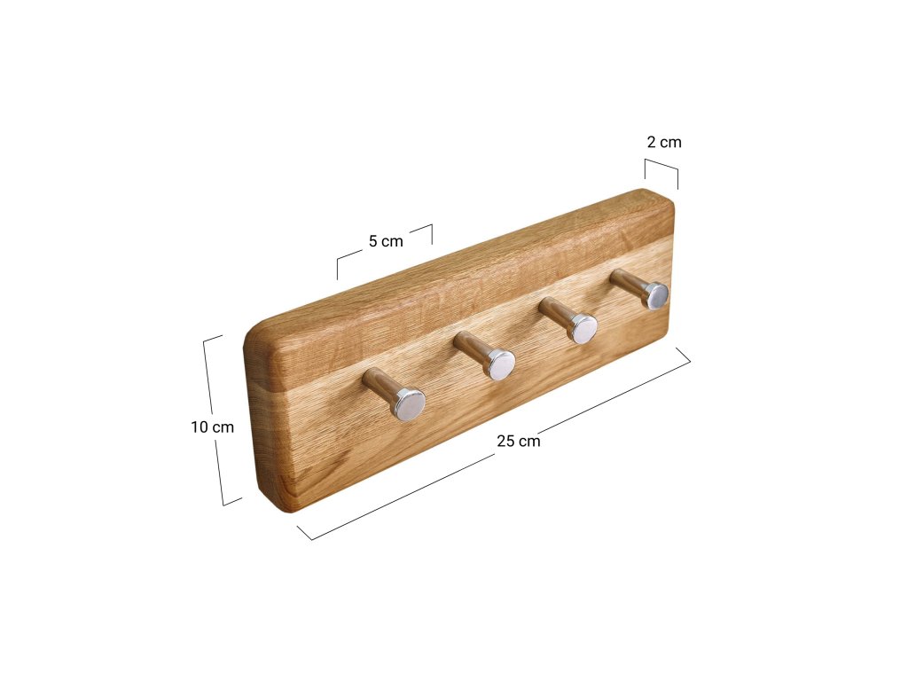Stylový a praktický věšák na klíče z masivního dubu je ideálním doplňkem pro vaši předsíň či chodbu. Díky svému elegantnímu designu přináší nejen funkčnost, ale také přirozený a teplý vzhled, který zvýrazní estetiku vašeho interiéru. Tento věšák je vybaven několika háčky pro pohodlné uskladnění klíčů, kabátů a dalších drobností, čímž pomáhá udržovat pořádek a přehlednost.