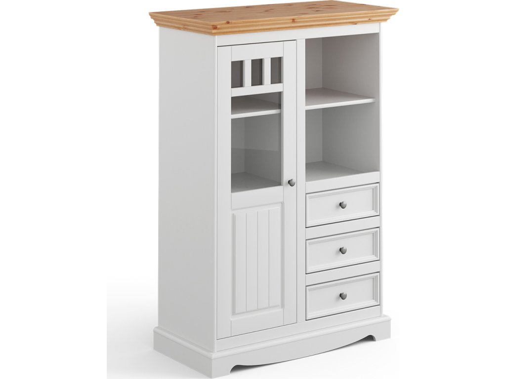 Vitrína Belluno Elegante 1d /3s, dekor bílá | borovice, masiv, borovice