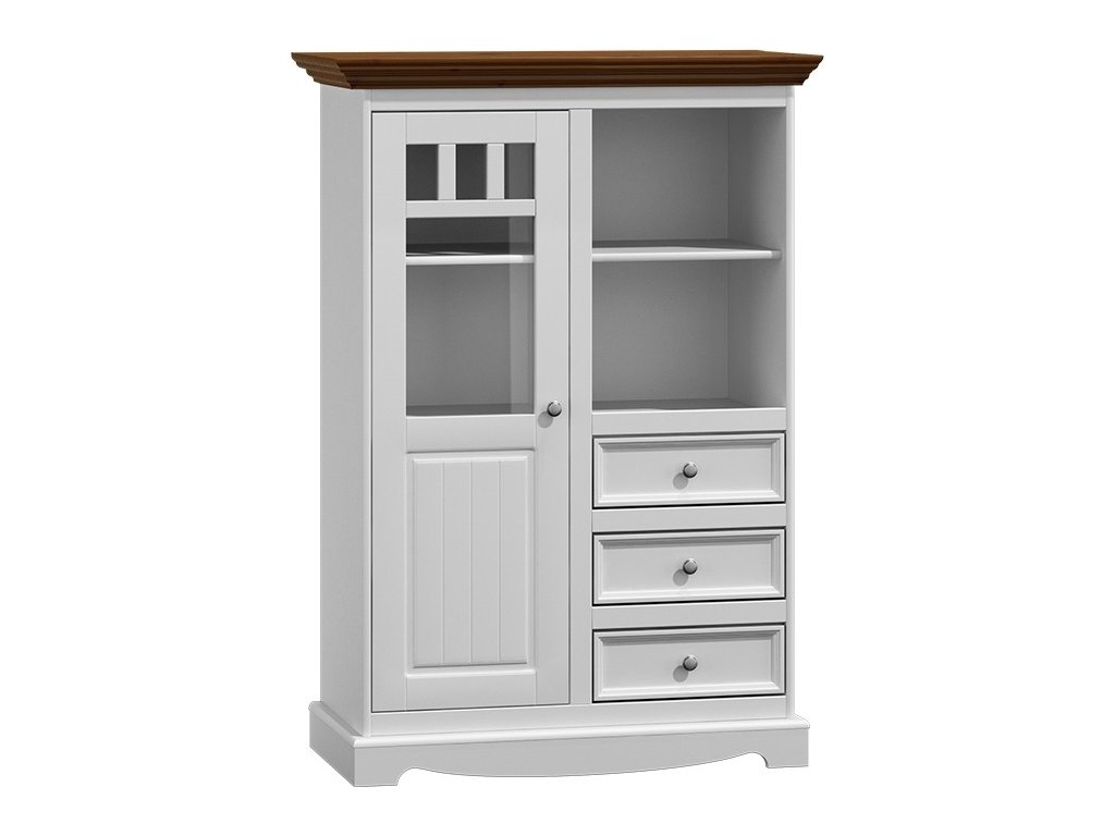 Vitrína Belluno Elegante 1d /3s, dekor bílá-ořech, masiv, borovice