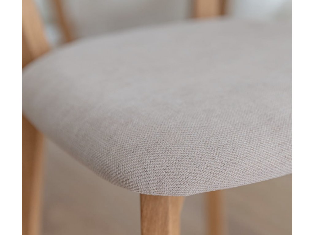 Model židle se čalouněným podsedákem o velikosti 41 x 41 cm v béžové barvě je skvělou volbou pro moderní a minimalistické interiéry, přinášející svěžest a klidnou atmosféru. Béžová barva perfektně ladí také s rustikálním či tradičním prostředím, kde zvýrazňuje přírodní prvky dubového dřeva.